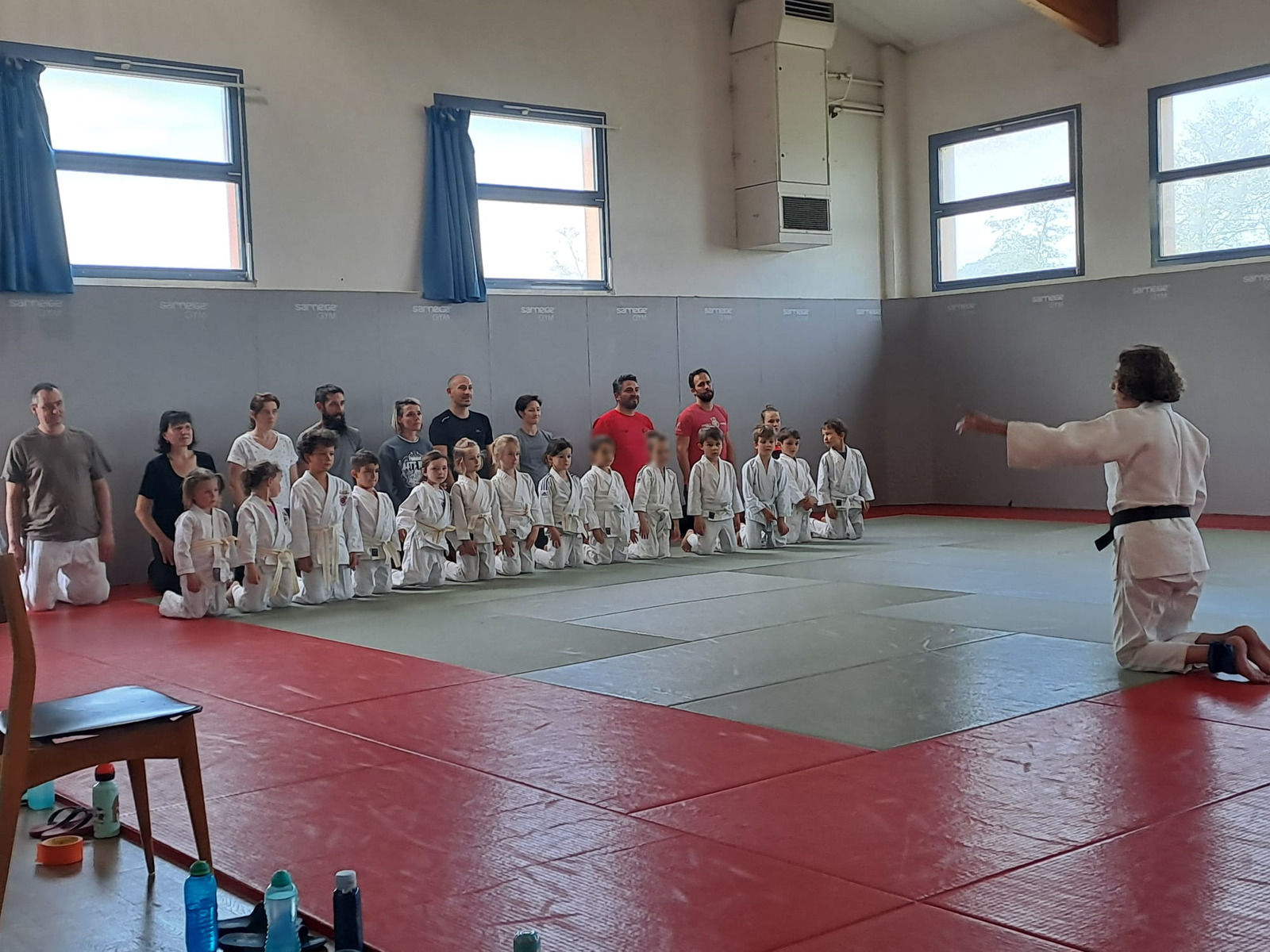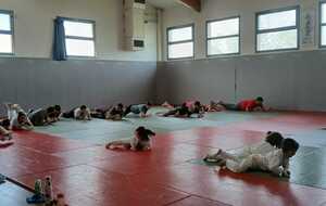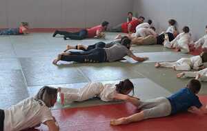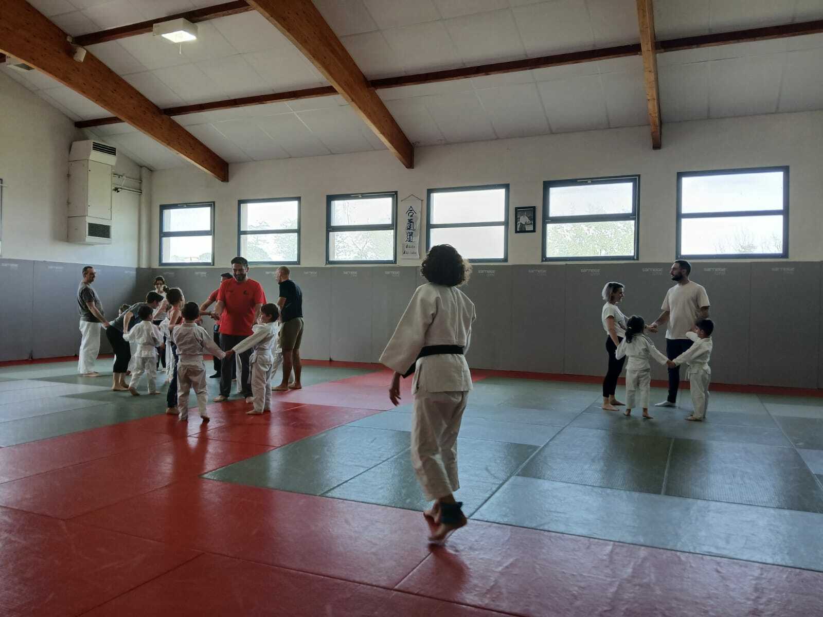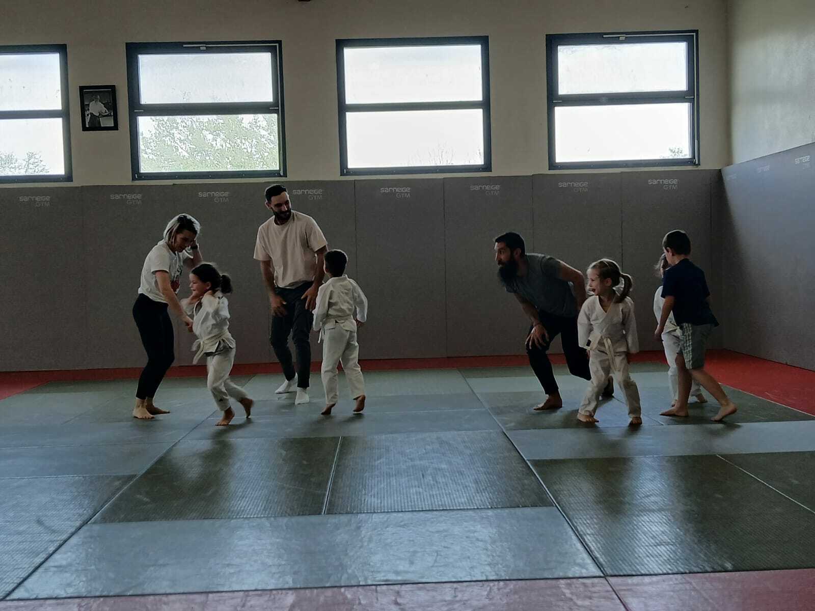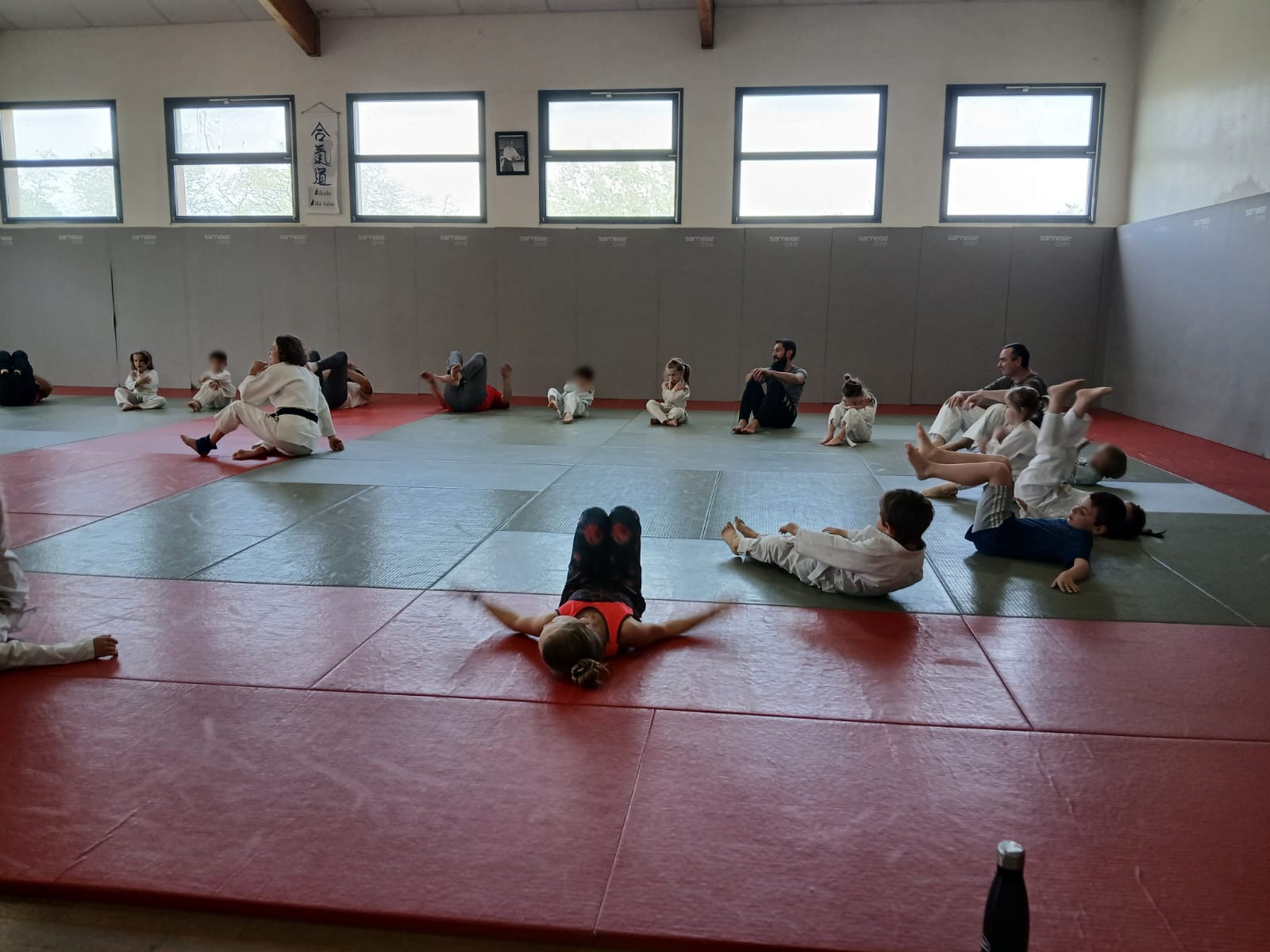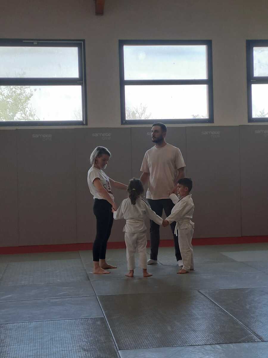 Les baby 2 (né(e)s en 2019) ont invité leurs parents, frères et sœurs sur le tatami. L'occasion pour les néophytes d'apprendre les rudiments de la chute arrière, les déplacements au sol ainsi que les retournements et les immobilisations grâce aux explications d'Arielle. Le tout agrémenté de jeux et de bonne humeur.