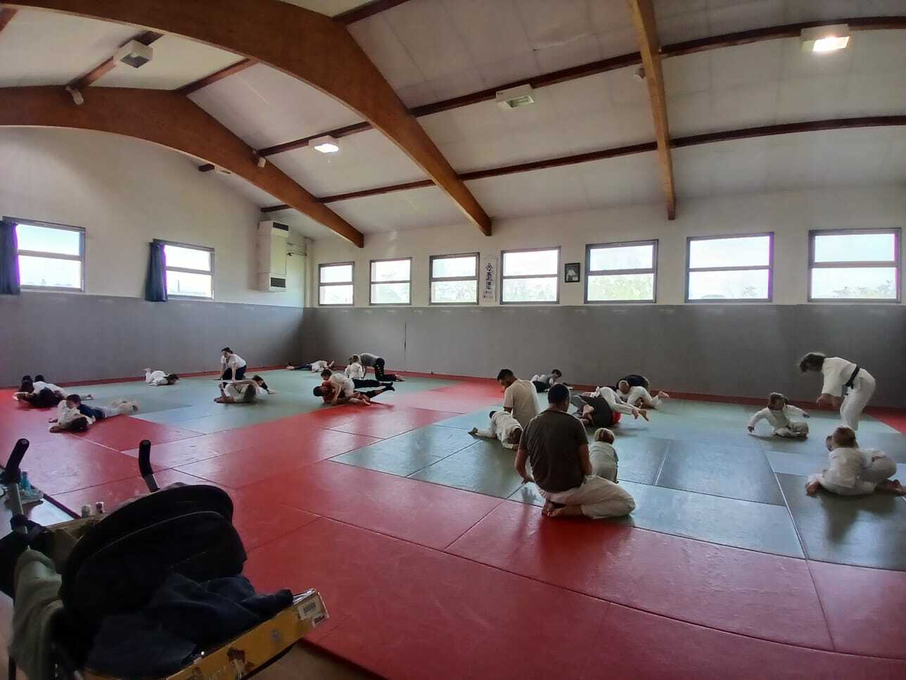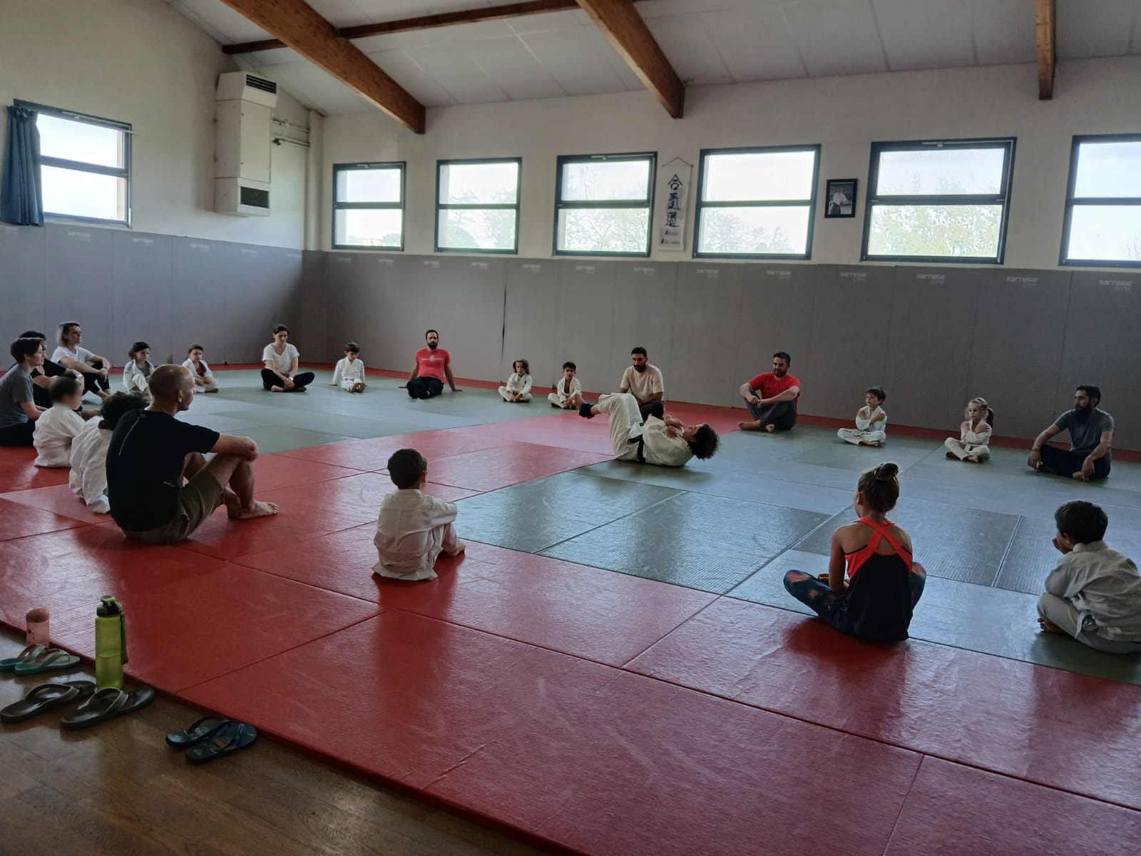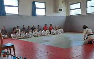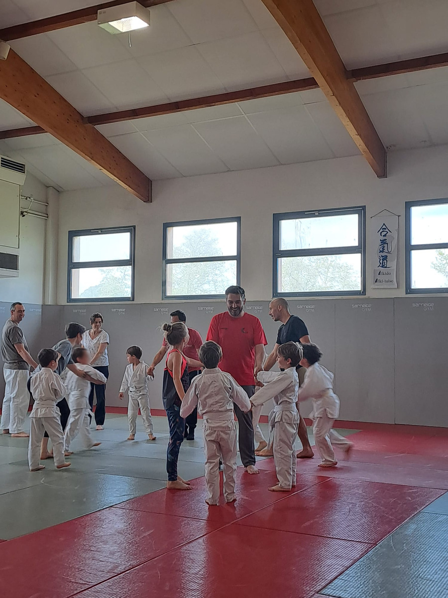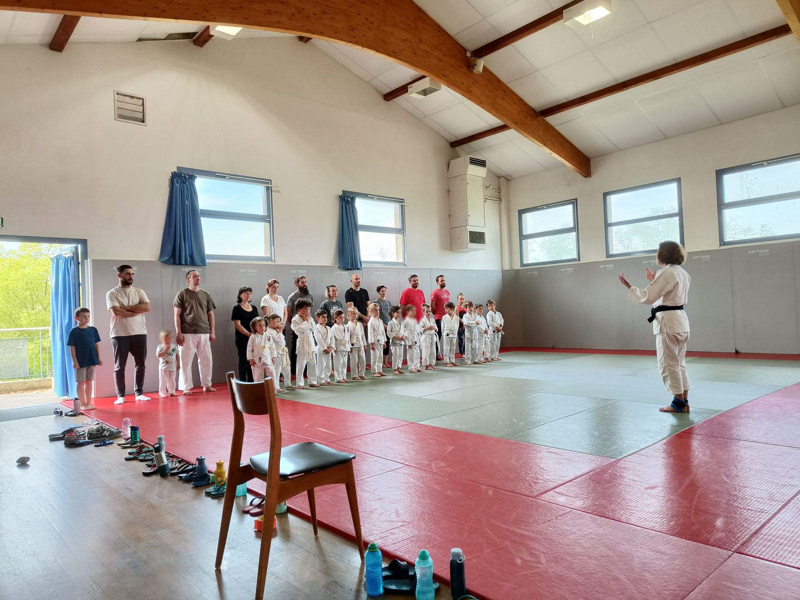 Les baby 2 (né(e)s en 2019) ont invité leurs parents, frères et sœurs sur le tatami. L'occasion pour les néophytes d'apprendre les rudiments de la chute arrière, les déplacements au sol ainsi que les retournements et les immobilisations grâce aux explications d'Arielle. Le tout agrémenté de jeux et de bonne humeur.