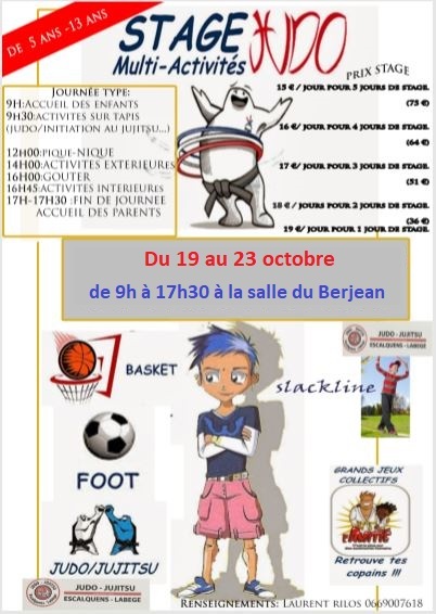 Stage Judo / Multi-activités du 19 au 23 octobre de 9h à 17h30.