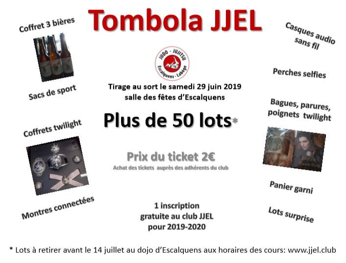 Le JJEL organise sa tombola. Le tirage au sort aura lieu le samedi 29 juin 2019 lors de la fête du club à la salle des fêtes d'Escalquens.