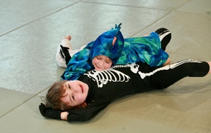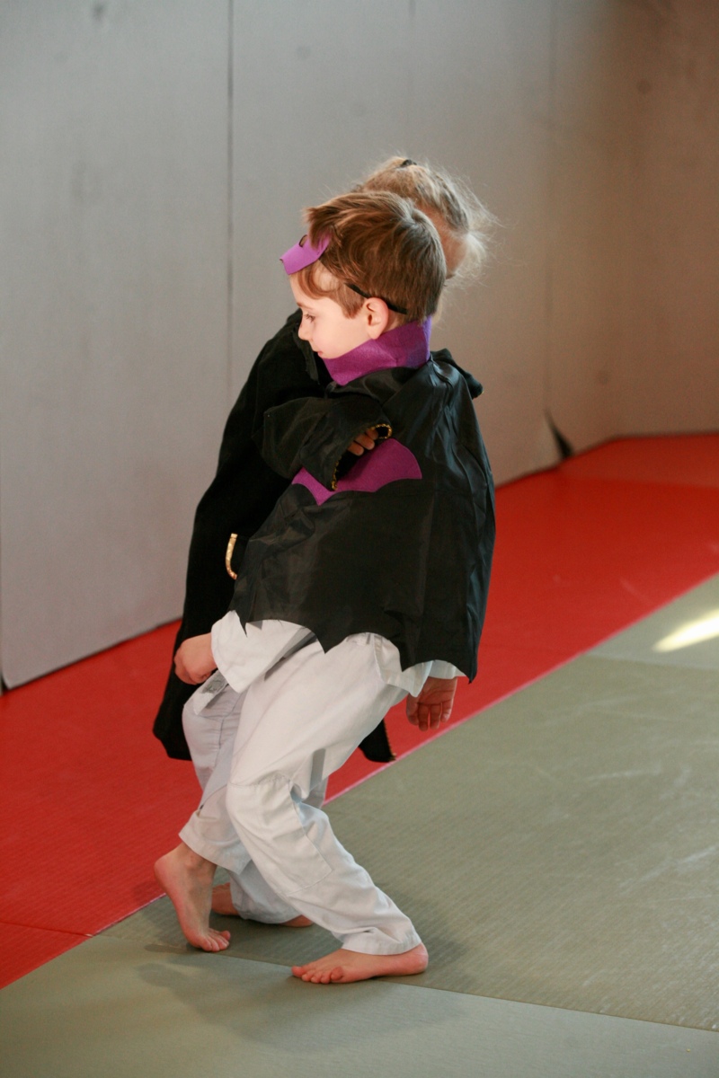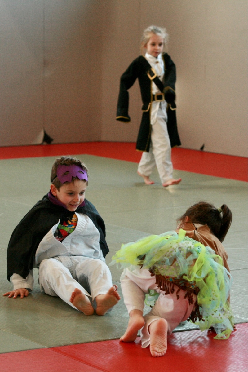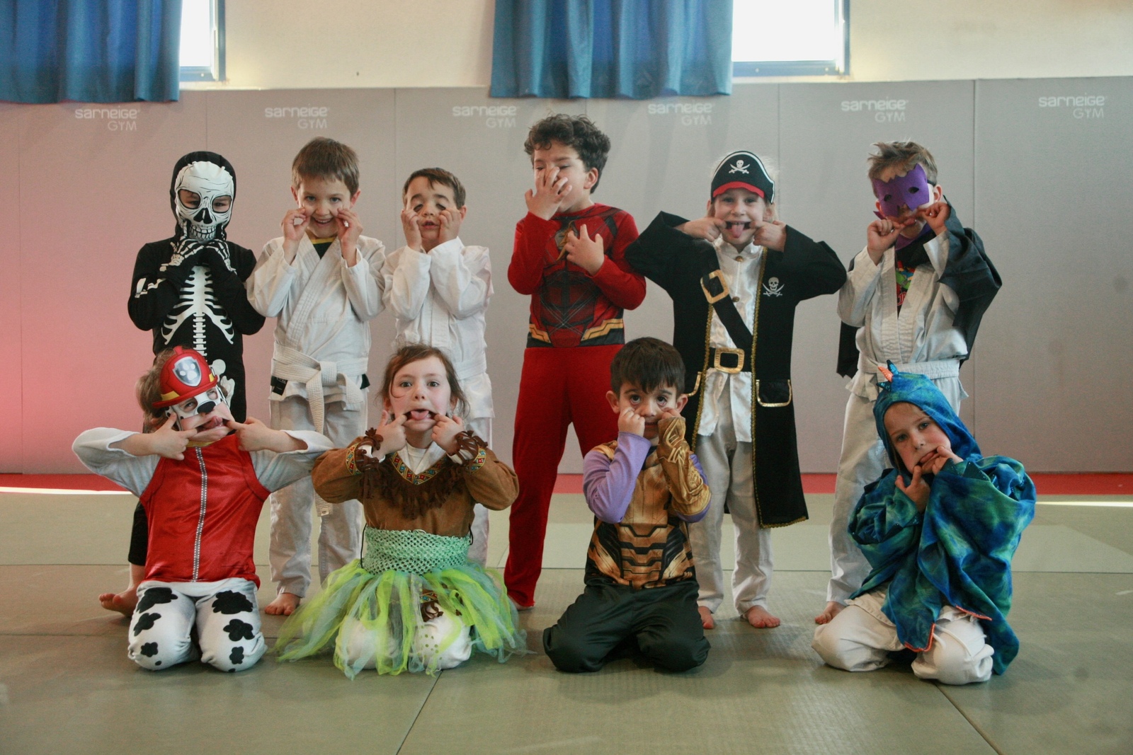 En cette semaine de Carnaval, les petits sont venus en super héros, en prince ou princesse, en sorcier ou sorcière... Ou tout simplement en en judoka! Arielle s'était déguisée en... judokate! 😂😂😂