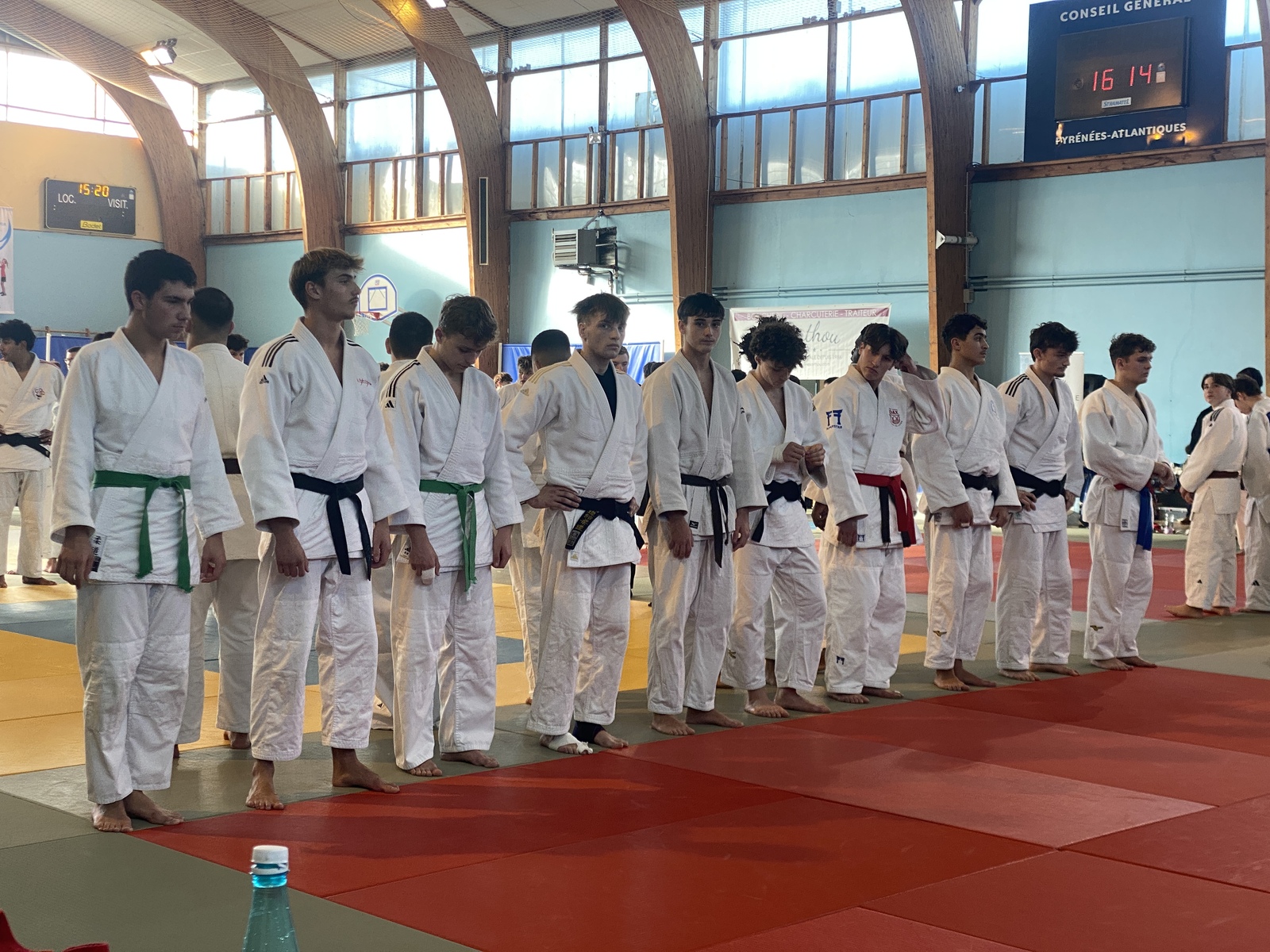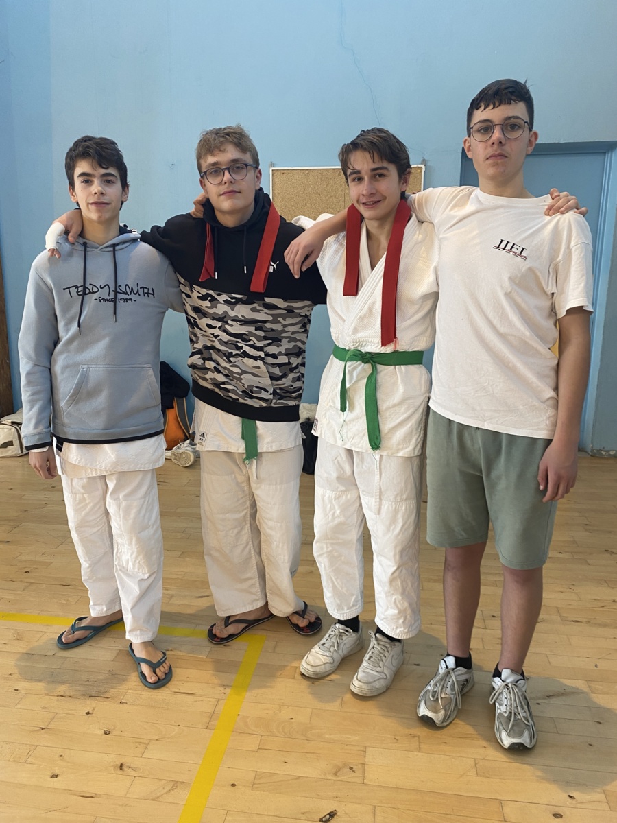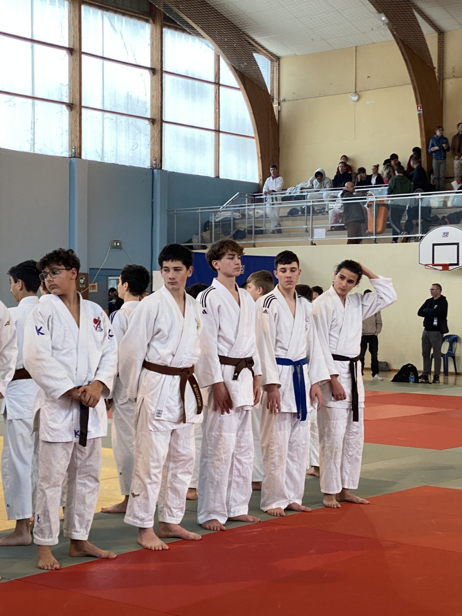Dimanche studieux pour 5 de nos licenciés au pays des vignes ce 15 décembre. Laureen Pauly, première arrivée à Jurançon avec une pesée à 9.00 pour un début de combat à 10.00, sort de sa poule en 52kg et échoue malheureusement en 8e face à une adversaire particulièrement solide. Cette dernière s’envole jusqu’en demi-finale et permet ainsi à Laureen d’être repêchée. Elle effectue alors une remontée jusqu’aux finales de repêchage où le combat s’avère très compliqué. Face à elle, une Girondine bien décidée à monter sur le podium. Le combat est épuisant pour les deux filles et Laureen conclue sur une victoire ! Hélas, l’énergie dépensée sur cette finale de repêchage l’empêchera de gagner le combat pour la place de 3. Laureen termine donc sur une très honorable 5e lors de ce tournoi relevé. Pour les garçons, arrivés pour 10.00 avec Arielle qui devait coacher Laureen, la pesée ne sera qu’à midi pour Quentin Hamelin-Bourgogne et 14.00 pour Gabriel Fjofort, Mathis Salanier et Paul Navel. La bonne humeur règne au sein du quatuor qui, des gradins, soutient leur camarade. En début d’après-midi, Quentin ouvre les hostilités en 66kg (il y avait une tolérance de 1 kg qui l’a relégué dans la catégorie inférieure) chez les espoirs (cadet 1). Malheureusement, il ne parviendra pas à sortir de poule face à deux adversaire pourtant accessibles. Une expérience qui appelle un travail précis dans les semaines à venir. Paul n’a finalement pas souhaité combattre, mais Mathis, lui, s’est accroché face à deux ceintures noires de niveau bien supérieur à lui. S’il a perdu, il a néanmoins eu une attitude très positive dans l’adversité, allant même jusqu’à inquiéter son dernier adversaire lors d’une liaison debout-sol. Félicitations ! Beau travail pour une reprise ! Quant à Gabriel, en -60kg, il commence par se faire contrer (son adversaire effectue un ushiro goshi qui ne lui laisse aucune chance) et perd son premier combat, mais lors de son deuxième combat, il tient la dragée haute à une ceinture noire qui n’arrivera jamais à lui placer ippon ou waza ari mais seulement 3 petits kinza. Gabriel a fait preuve d’une vbelle opiniâtreté sans, malheureusement, réussir à concrétiser. Un beau combat qui laisse augurer une belle suite. Félicitations à tous nos combattants qui se sont investis dans cette journée de judo et pour la bonne humeur et l’entente qui débordaient du groupe !